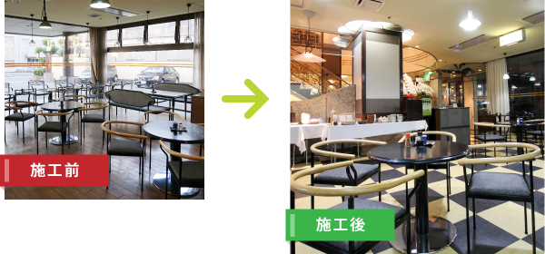 通常の現状回復を目的としたリフォームとは一線を画し、 リノベーションは外観・フロント・間取り・施設・設備の変更や、現在・将来のニーズに合わせた 大規模改修を実施します。当然コストダウンにも努めますので、初動投資が低い=早期回収が成り立ちます。